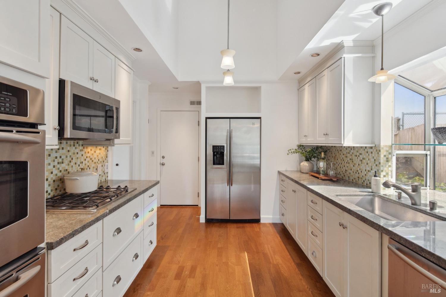 Welcome home to Corte Madera! Not on the market in over four decades, this home has been lovingly cared for and thoughtfully added on to over the years. The upstairs has been configured to include a spacious primary suite with ample closets and bath in addition to another large bedroom and full bath. Downstairs are two more bedrooms, full bath and the inviting common areas. The family room off the kitchen is spacious with cathedral ceilings, fireplace, built-in bookshelves, a casual eating area and access to the back yard - all providing an inviting space to relax. Likewise, the formal dining room, also with high ceilings, sets the stage for memorable family dinners and celebrations. The formal living room is a great space to host parties and gather with friends. Outside you'll find a flat yard perfect for outdoor play, gardening, or simply unwinding. This is a unique blend of comfort, space and convenience with easy access to the freeway, shopping and hiking trails within an award-winning Reed Union school district.